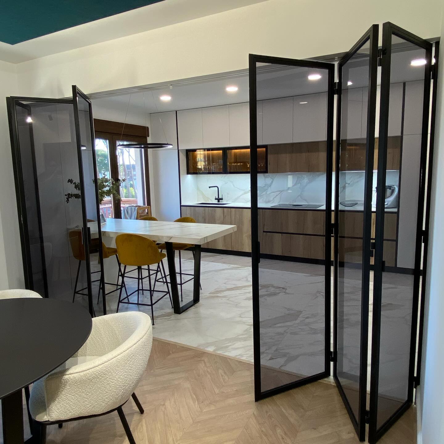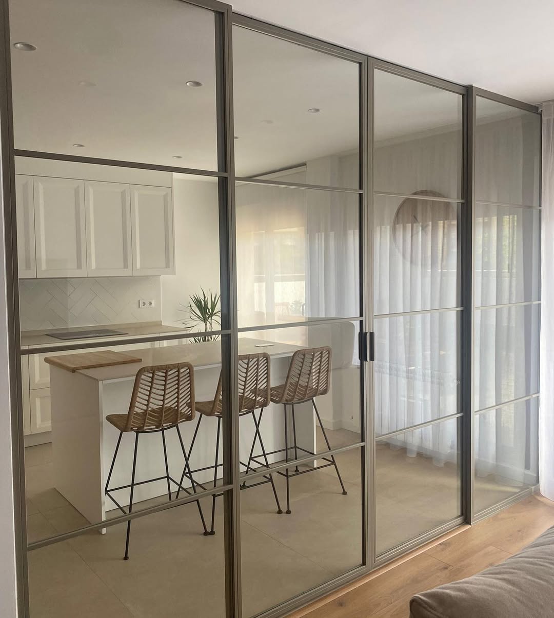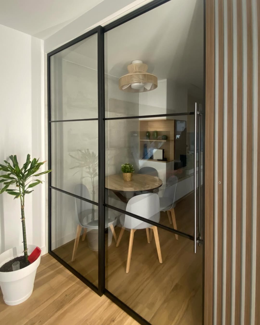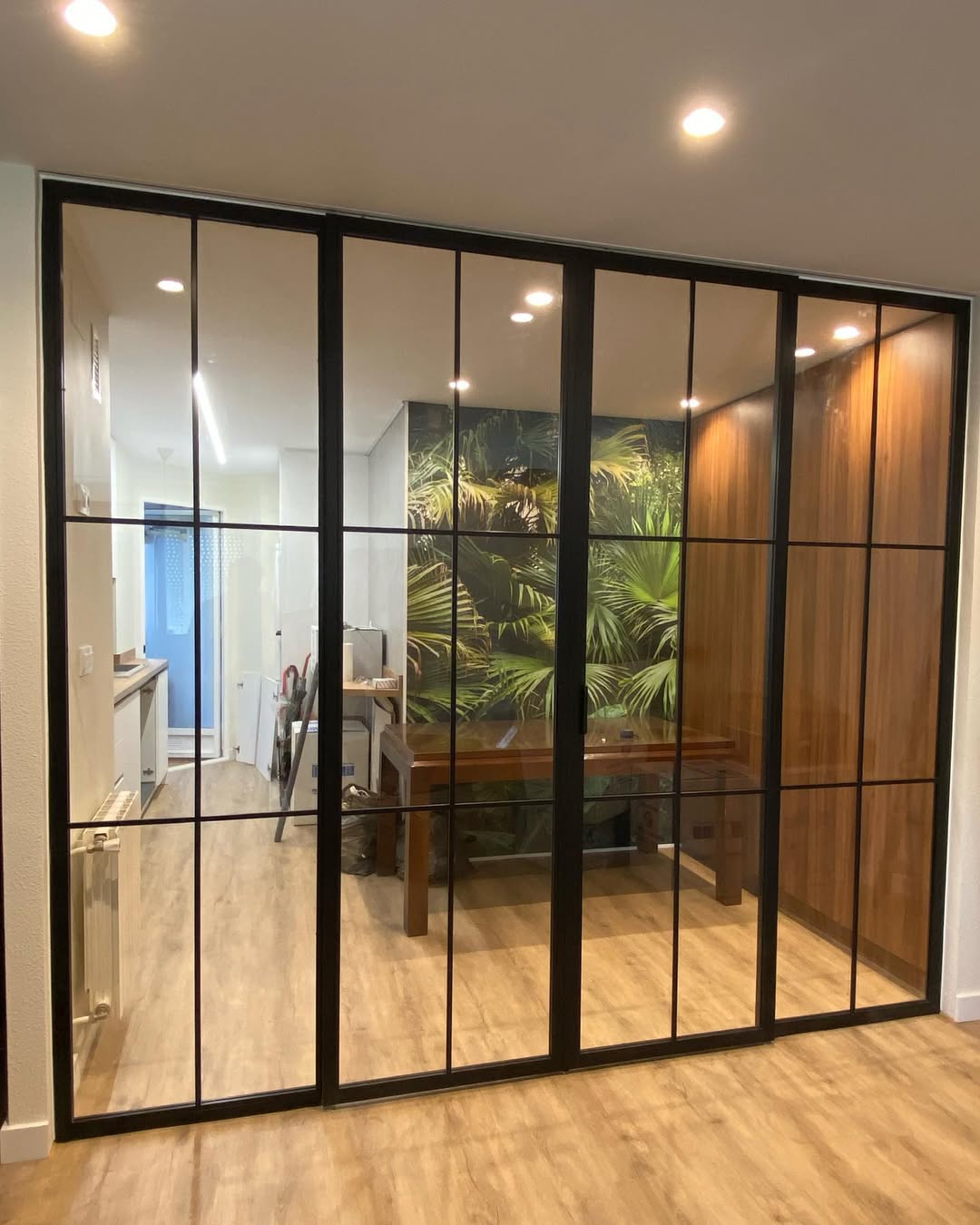 Podemos crear puertas interiores de hierro y cristal personalizadas en cualquier tamaño, forma y configuración para adaptarse a prácticamente cualquier espacio de tu vivienda. Algunos de los lugares mas utilizados son el salón, cocina, baño o el vestidor.